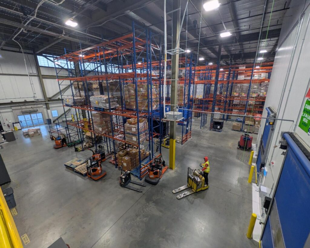 This facility is state of the art, provides essential meeting and office space, and includes a full demonstration kitchen. With enough vertical storage to deal with the high rate of supply turnover, they often fill and empty their 32,000 square foot storage facility every day and a half.